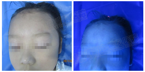 媛媛(化名)的家人在8个月前发现其眉弓和额头上出现了白斑,带着媛媛先后在当地的医院和华西医院进行治疗,效果均不明显,后在身边的亲友的介绍下来到我院治疗。